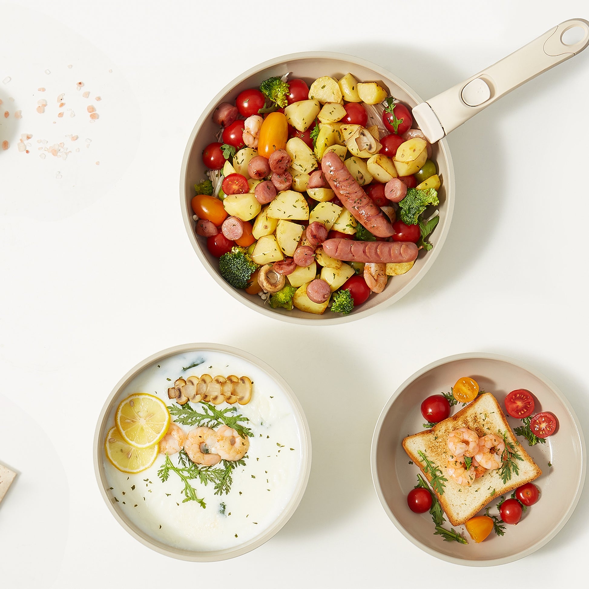 Crafted with natural ceramic, our cookware set is free from Teflon, PFAS, PTFE, PFOA, lead, and cadmium—ensuring a healthy cooking experience every time. -