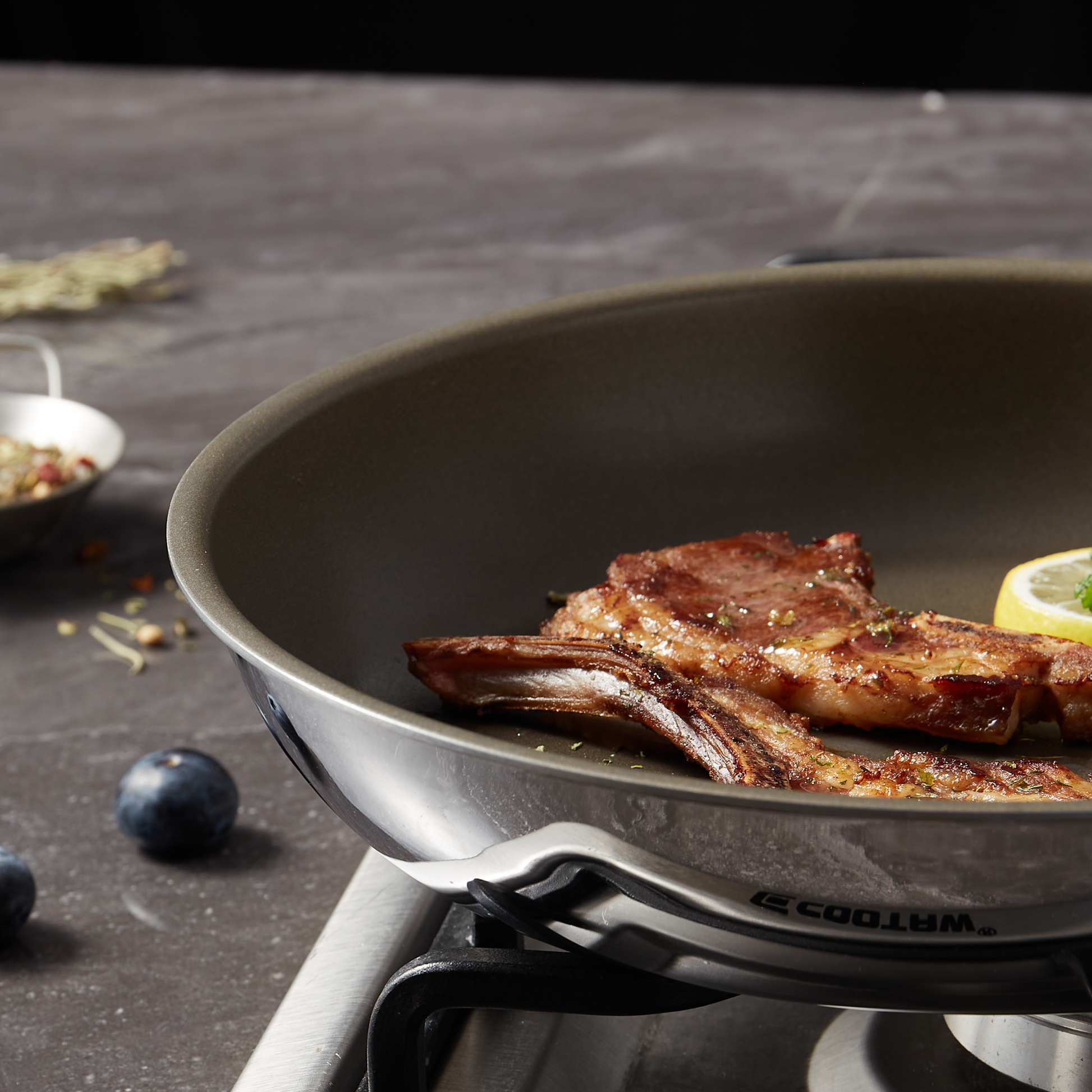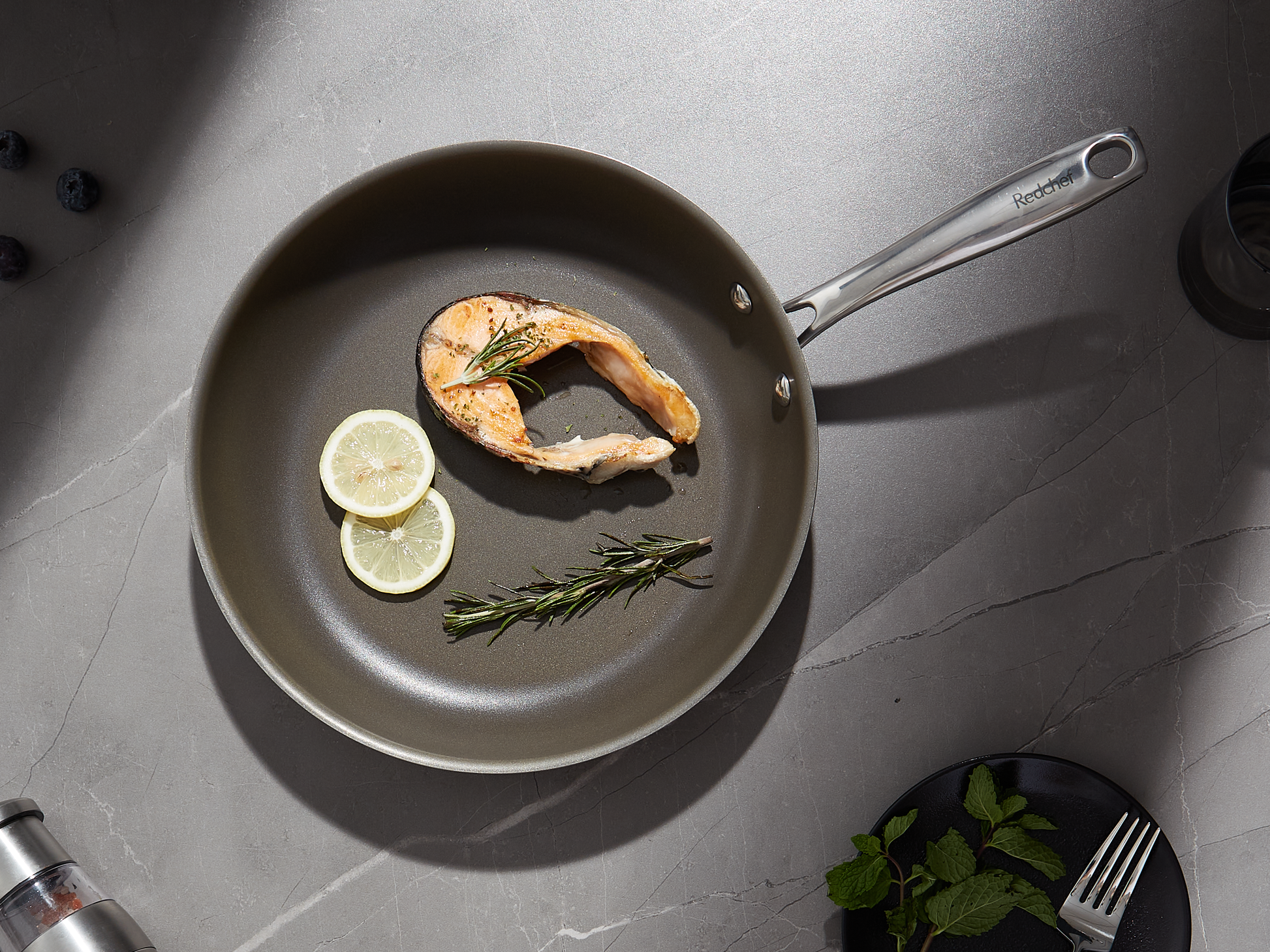 - Tri-Ply Design: The Redchef non stick frying pans is built with sturdy tri-ply stainless steel construction – aluminum between two layers of stainless-steel, cover with our unique Ti-ceramics nonstick technology to deliver the searing power of stainless, durability of cast-iron and easy cleanup of nonstick